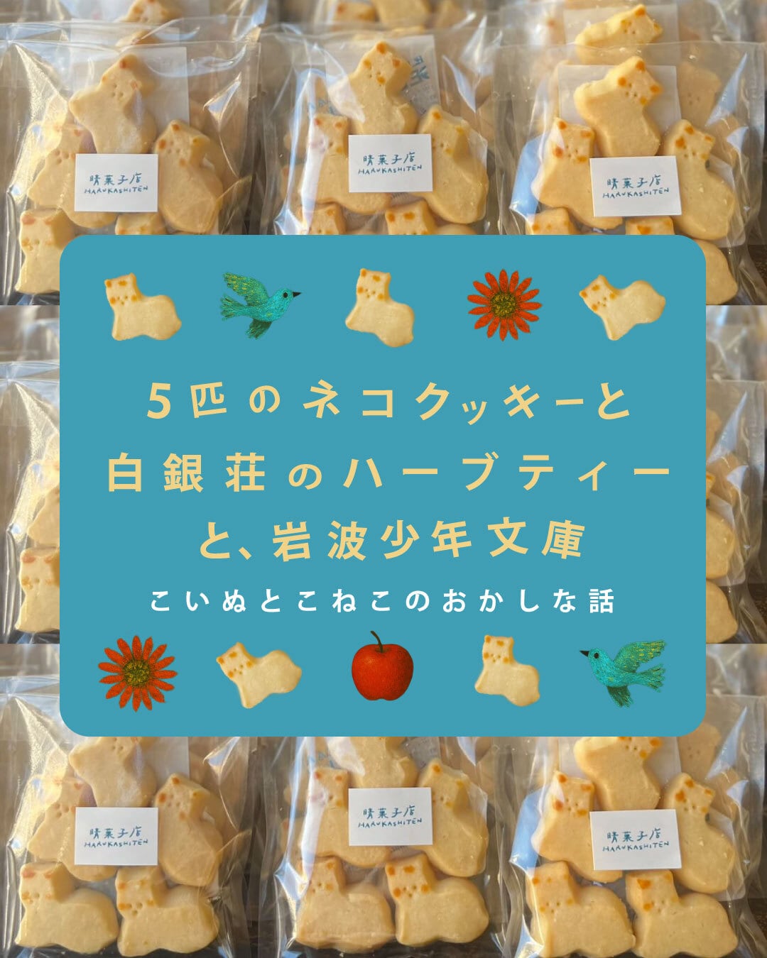 「こいぬとこねこのおかしなはなし」5匹のネコクッキーと、物語とハーブティ (クッキー&ティ2種)