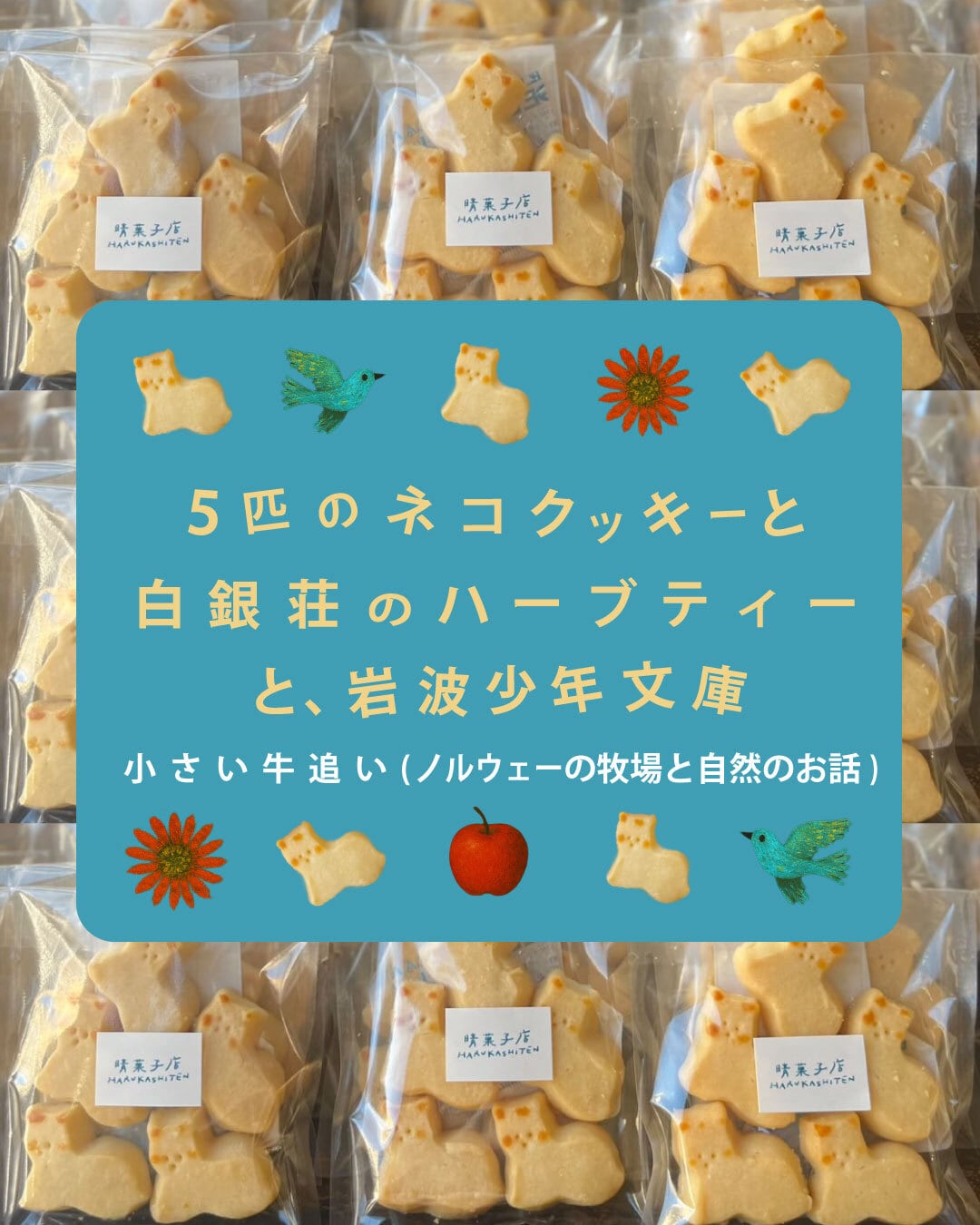 「小さい牛追い」5匹のネコクッキーと、物語とハーブティ (クッキー&ティ2種)